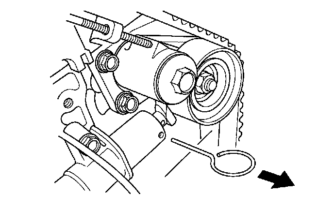 8. Use a hydraulic press to slowly compress the auto-tensioner. Insert a 2.0 mm (0.08 in.) pin through the housing and the rod.
