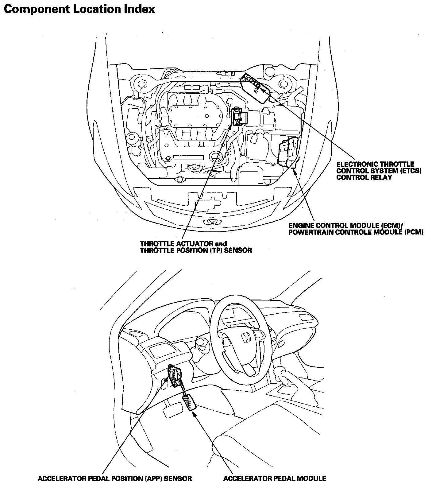 Electronic Throttle Control System Component Location Index: