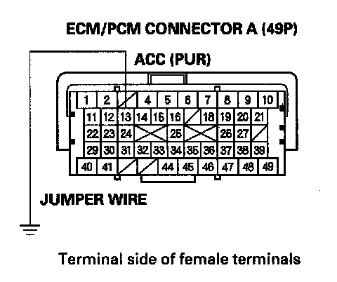 13. Momentarily connect ECM/PCM connector terminal A13 to body ground with a jumper wire several times.