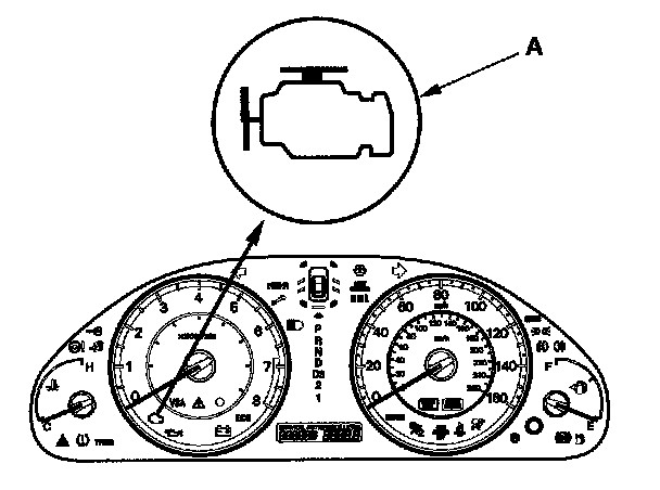 1. Start the engine, and check the MIL (A).
