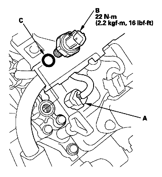 4. Install the parts in the reverse order of removal with a new O-ring (C).