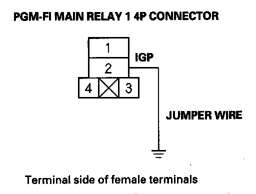 11. Connect PGM-FI main relay 1 4P connector terminal No. 2 to body ground with a jumper wire.