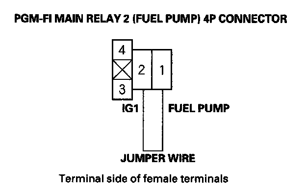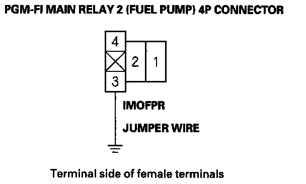 15. Connect PGM-FI main relay 2 (FUEL PUMP) 4P connector terminal No. 3 to body ground with a jumper wire.