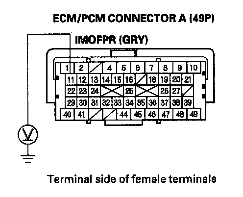 22. Measure the voltage between ECM/PCM connector terminal A11 and body ground.