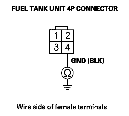 36. Check for continuity between fuel tank unit 4P connector terminal No. 4 and body ground.