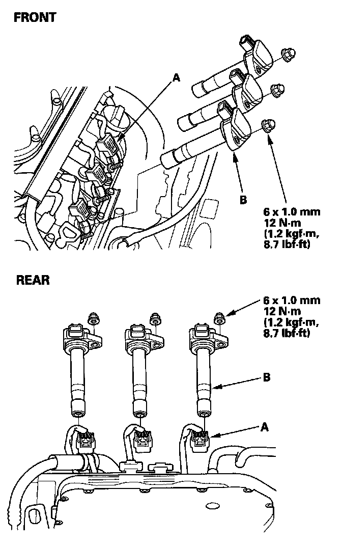 connectors (A), then remove the ignition coils (B).