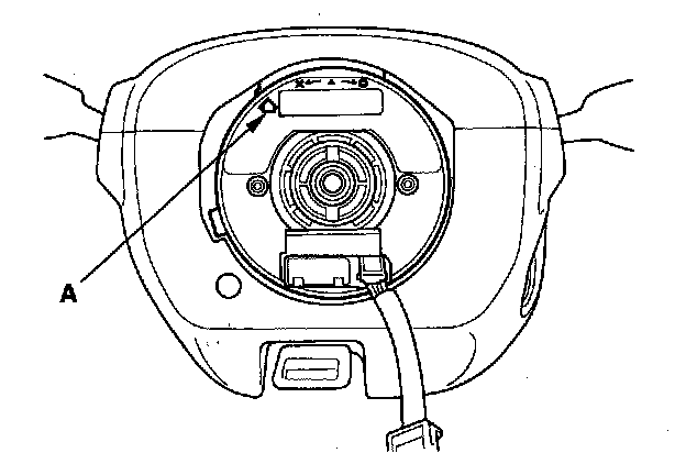 6. If necessary, center the cable reel (New replacement cable reels come centered.). Do this by first rotating the cable reel clockwise until it stops. Then rotate it counterclockwise (about three turns) until the arrow mark (A) on the cable reel label points straight up.