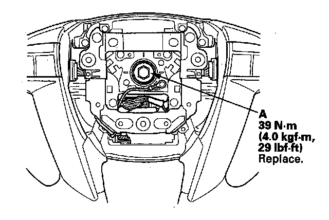 8. Install and torque a new steering wheel bolt (A), then reconnect the connectors.