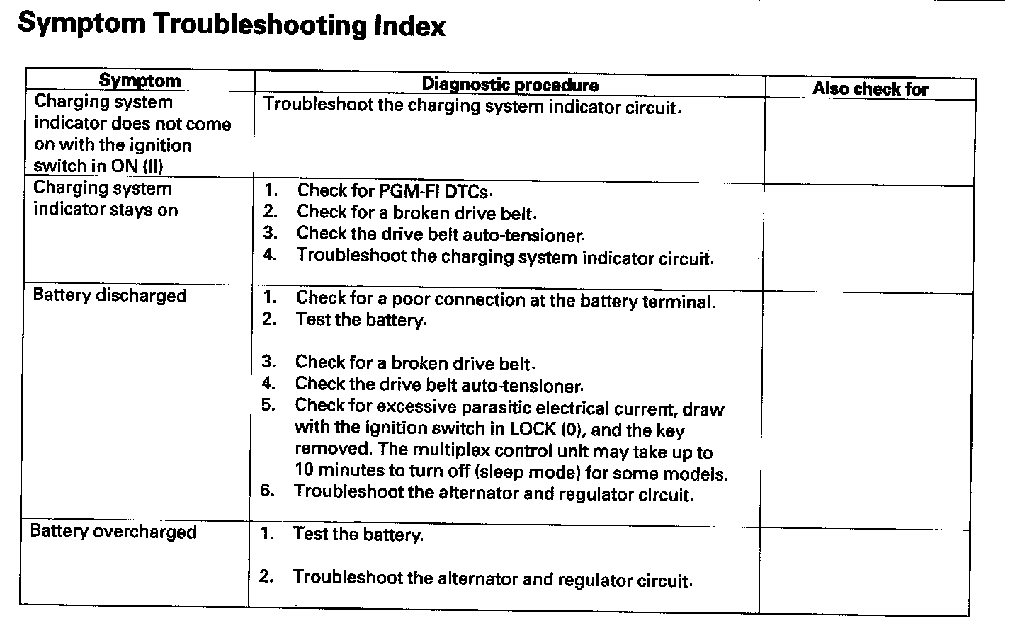 Symptom Troubleshooting Index: