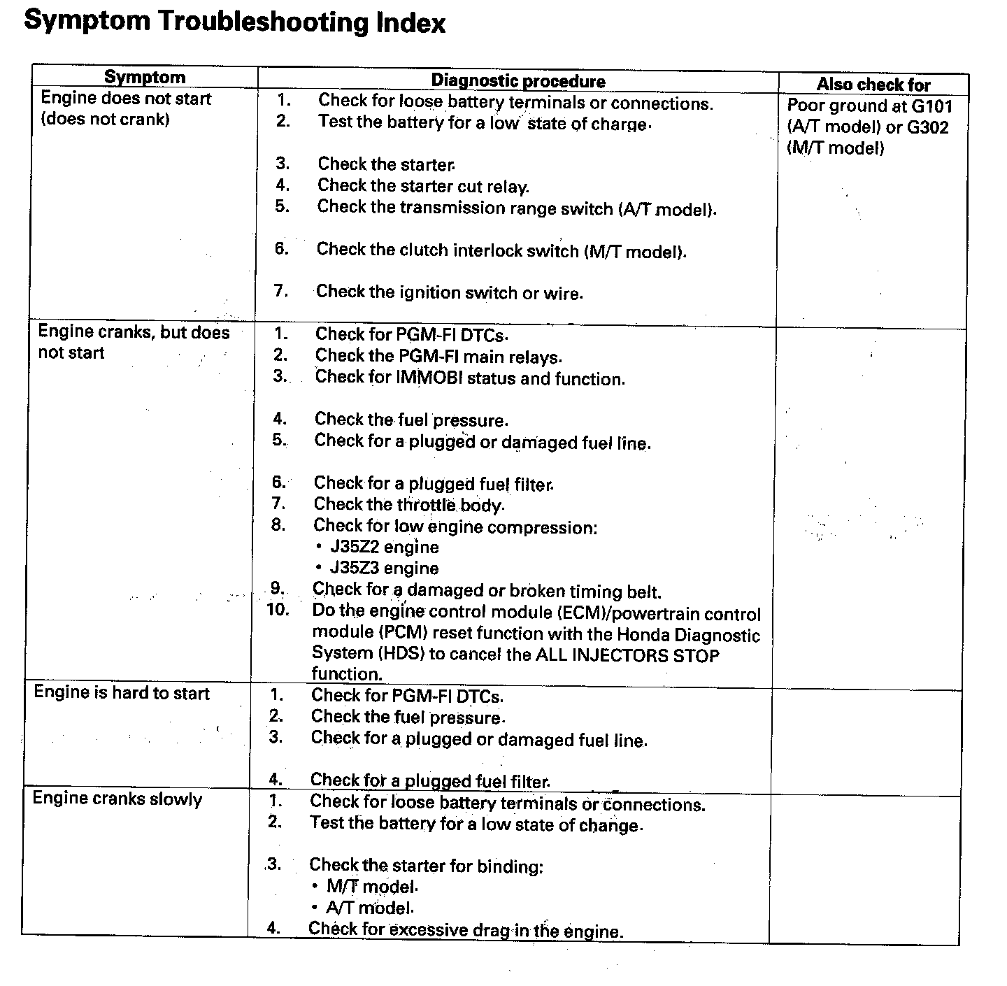 Symptom Troubleshooting Index: