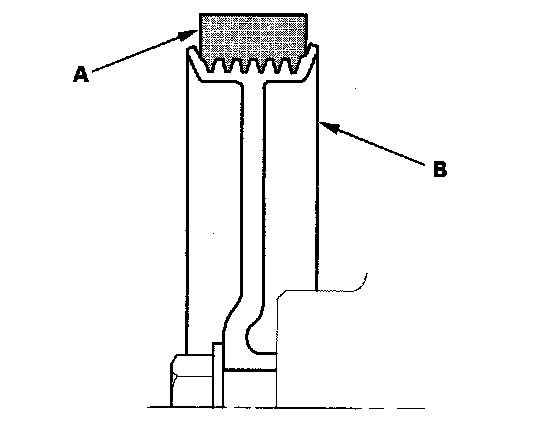 ^ Make sure that the belt is properly positioned on the pulleys (B).