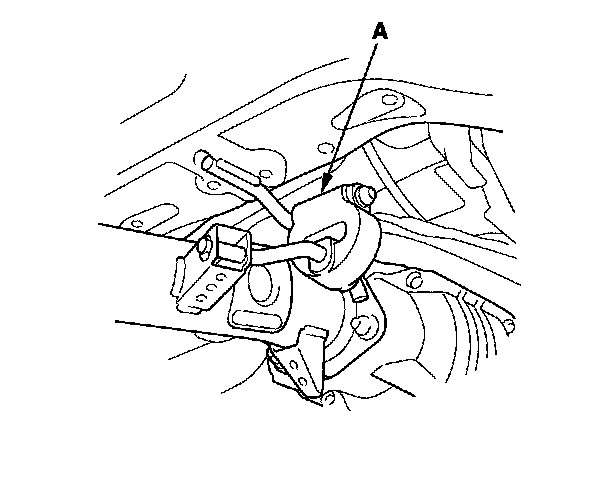 14. A/T: Remove the rear engine mount stop (A).