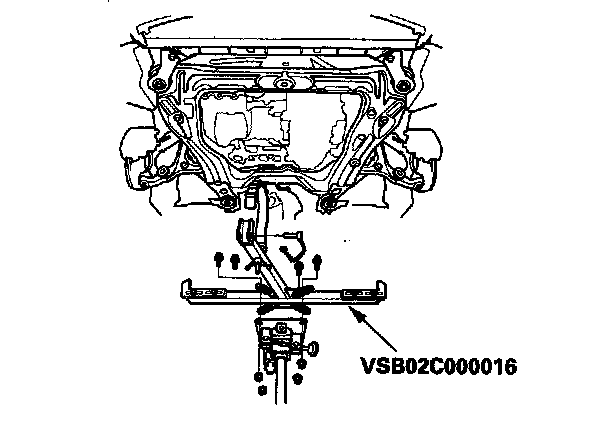 NOTE: Do not try to lower the front subframe beyond the loosened subframe mounting bolts clearance.