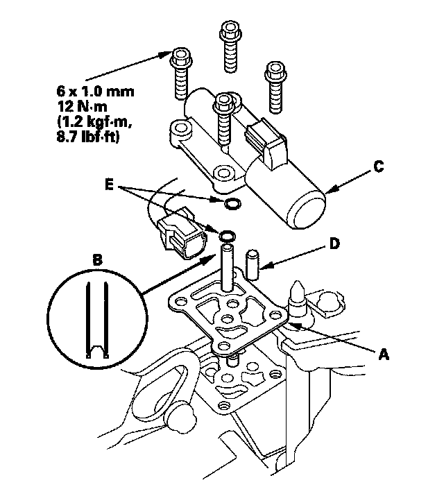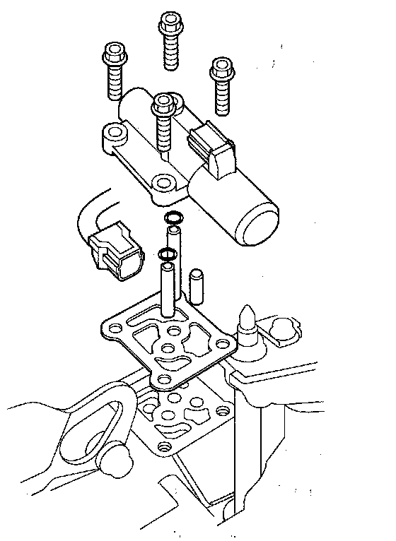 6. Clean the mounting surfaces and the fluid passages of the solenoid valve body and transmission housing.