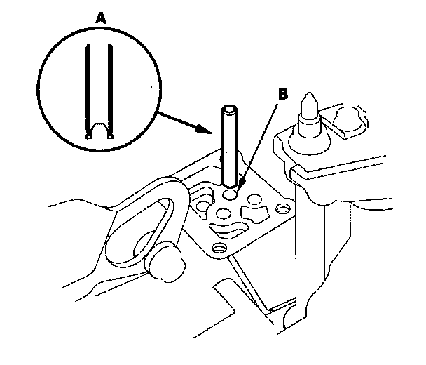 7. Install the 8 x 53 mm ATF joint pipe (A) with the filter end into its mounting hole (B).