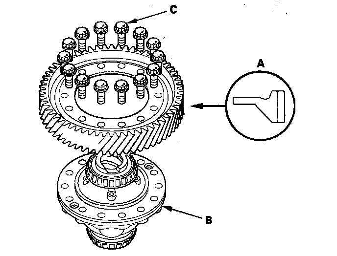 NOTE: The final driven gear bolts (C) has left-hand threads.