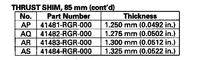 12. Select a new thrust shim. To increase the starting torque, increase thickness of the thrust shim. To decrease the starting torque, decrease the thickness of the thrust shim. Changing the shim to the next size will increase or decrease the starting torque about 0.5-0.6 N-m (5-6 kgf-cm, 5-5 lbf-in.)