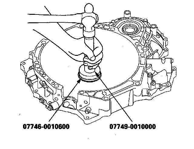 5. Install the 29 x 39 x 9.5 mm bearing into the torque converter housing using the driver and the attachment (37 x 40 mm).