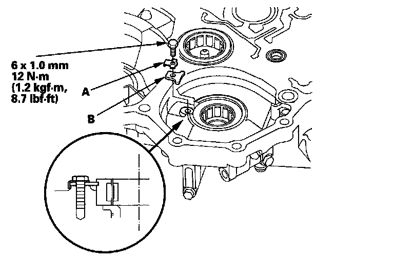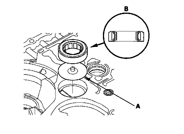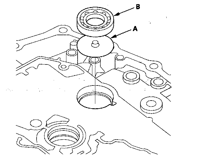 2. Install the ATF guide plate (A), then install the new bearing (B) in the housing.