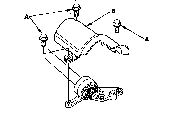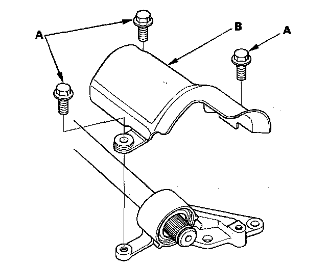 1. Remove the heat shield bolts (A) and the heat shield (B).