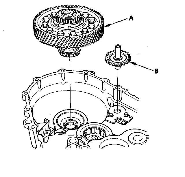 4. Install the differential assembly (A) and oil pump shaft (B).