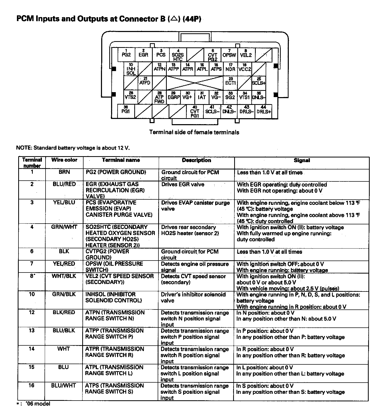 PCM Inputs And Outputs At Connector B (44P) Part 1: