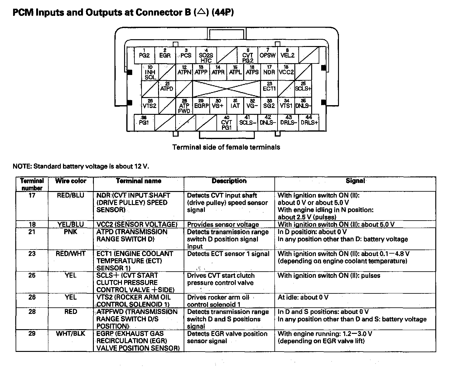PCM Inputs And Outputs At Connector B (44P) Part 2: