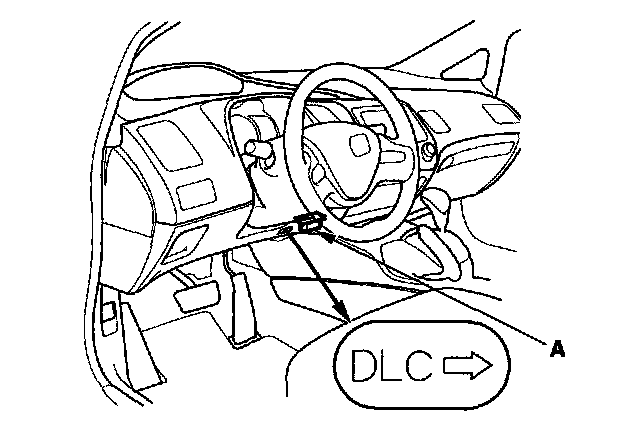 2. Connect the HDS to the data link connector (DLC) (A) located under the driver's side of the dashboard.