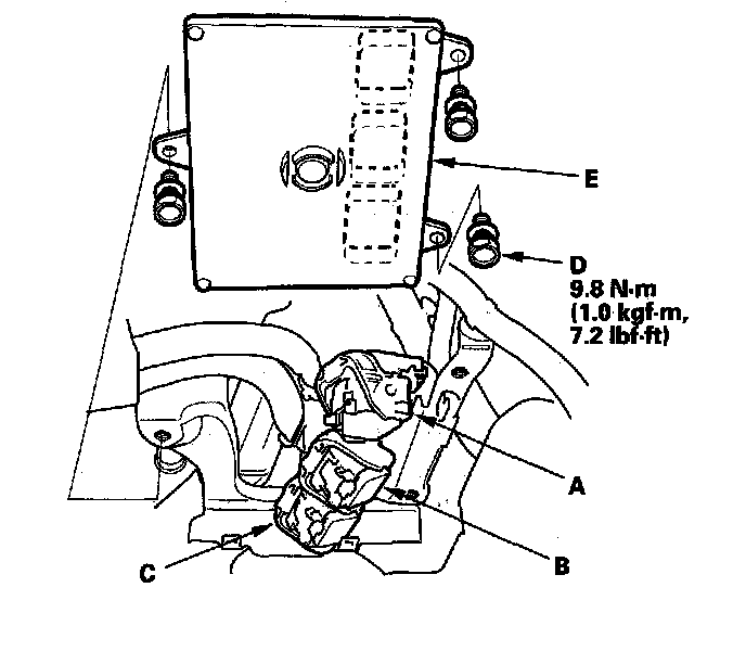 NOTE: PCM connectors A, B, and C have symbols (A=Square, B=Triangle, C=Circle) embossed on them for identification.