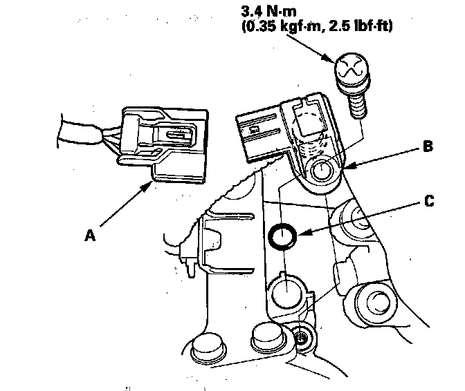 Install the parts in the reverse order of removal with a new O-ring (C).