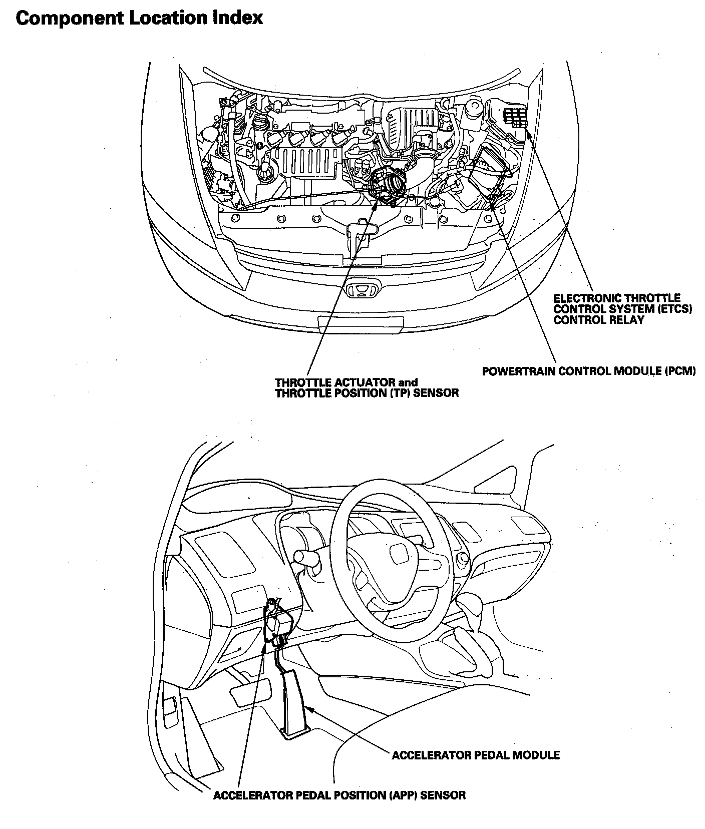 Electronic Throttle Control System Component Location Index: