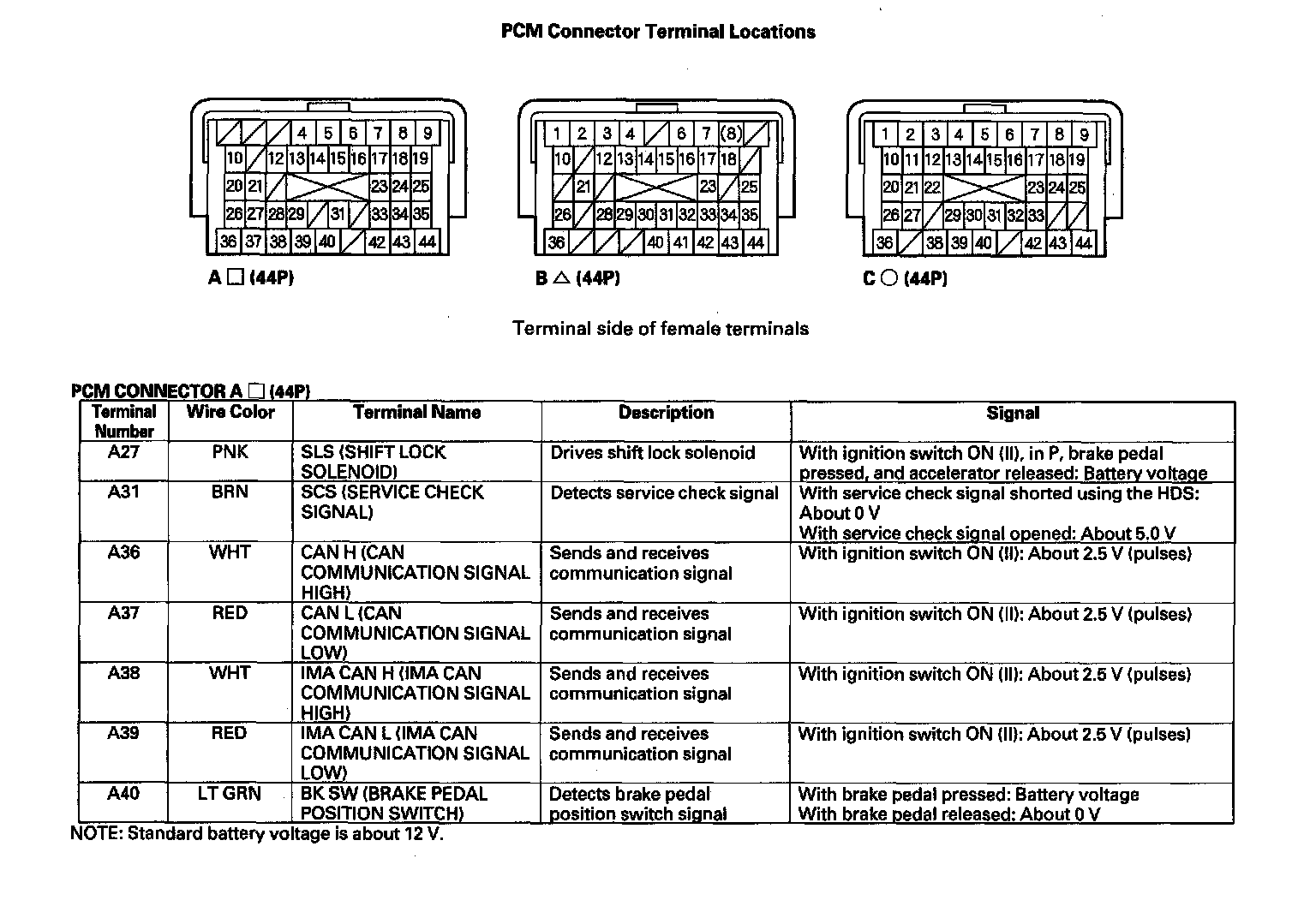 Pinout Values and Diagnostic Parameters