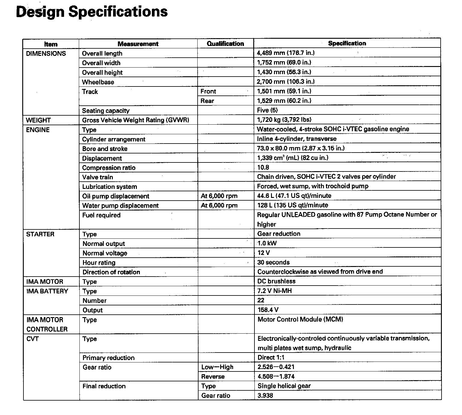Civic L4-1.3L Hybrid