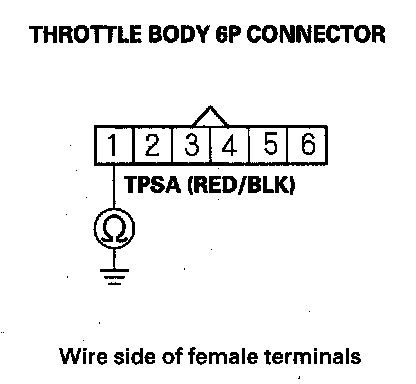 9. Check for continuity between throttle body 6P connector terminal No. 1 and body ground.