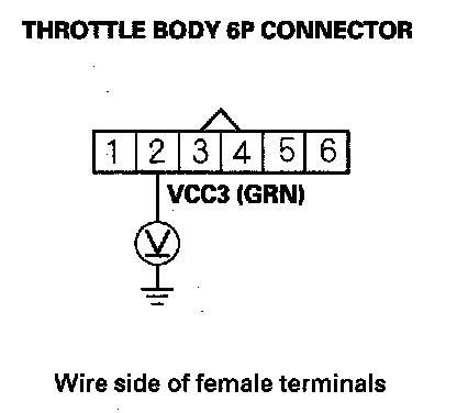 10. Measure voltage between throttle body 6P connector terminal No. 2 and body ground.