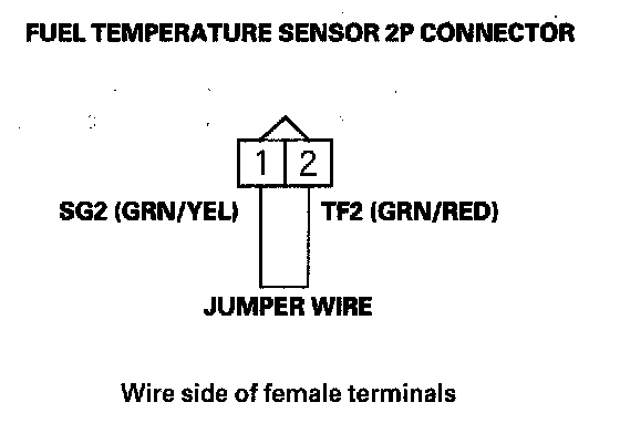 9. Remove the jumper wire from the fuel temperature sensor 2P connector.