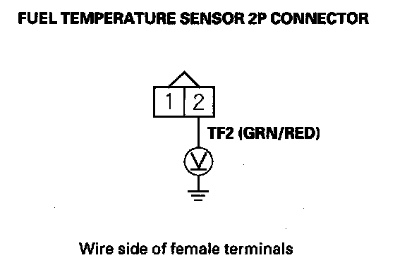 11. Measure voltage between fuel temperature sensor 2P connector terminal No. 2 and body ground.