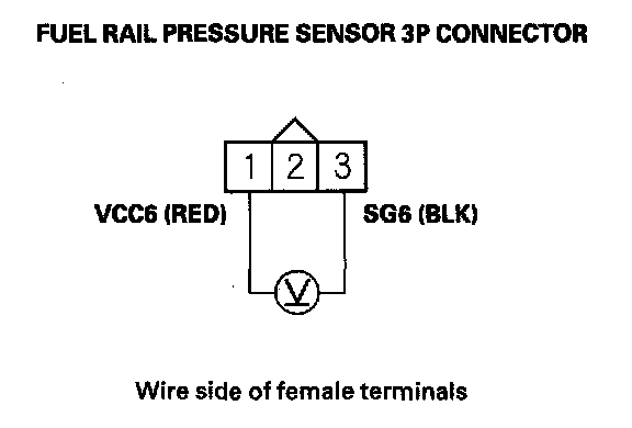 7. Measure voltage between fuel rail pressure sensor 3P connector terminals No. 1 and No. 3.