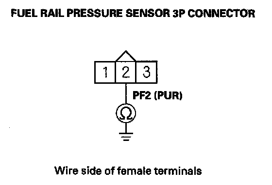 11. Check for continuity between fuel rail pressure sensor 3P connector terminal No. 2 and body ground.