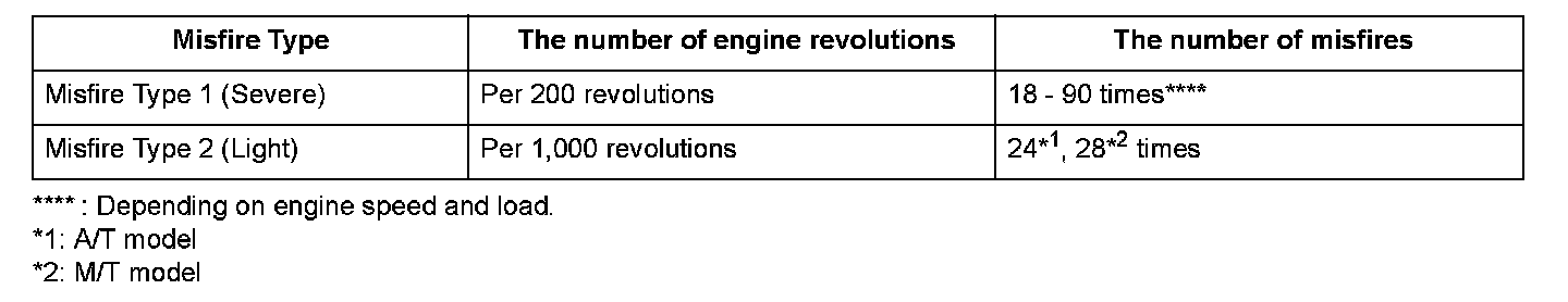 Type 2 (2 drive cycles): When the number of misfires per 1,000 engine revolution reaches the level that affects FTP mode exhaust emissions, a DTC is stored and the MIL comes on.
