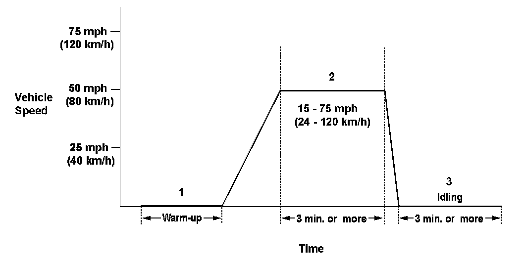 2. Drive the vehicle at a speed between 15 - 75 mph (24 - 120 km/h) for at least 3 minutes.