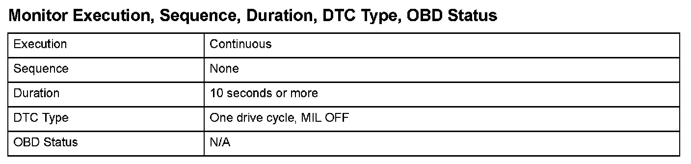 Monitor Execution, Sequence, Duration, DTC Type, OBD Status