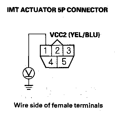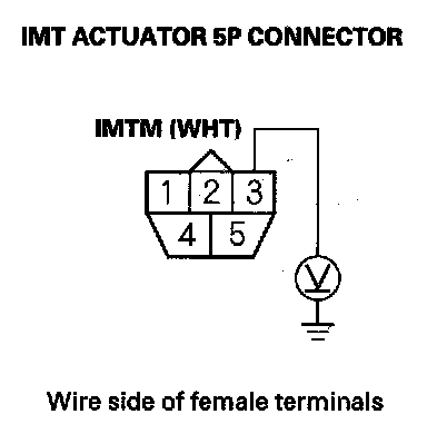 12. Measure voltage between IMT actuator 5P connector terminal No. 3 and body ground.