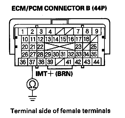 23. Check for continuity between IMT actuator 5P connector terminal No. 4 and ECM/PCM connector terminal B37.