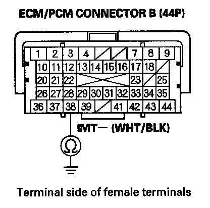 24. Check for continuity between IMT actuator 5P connector terminal No. 5 and ECM/PCM connector terminal B38.