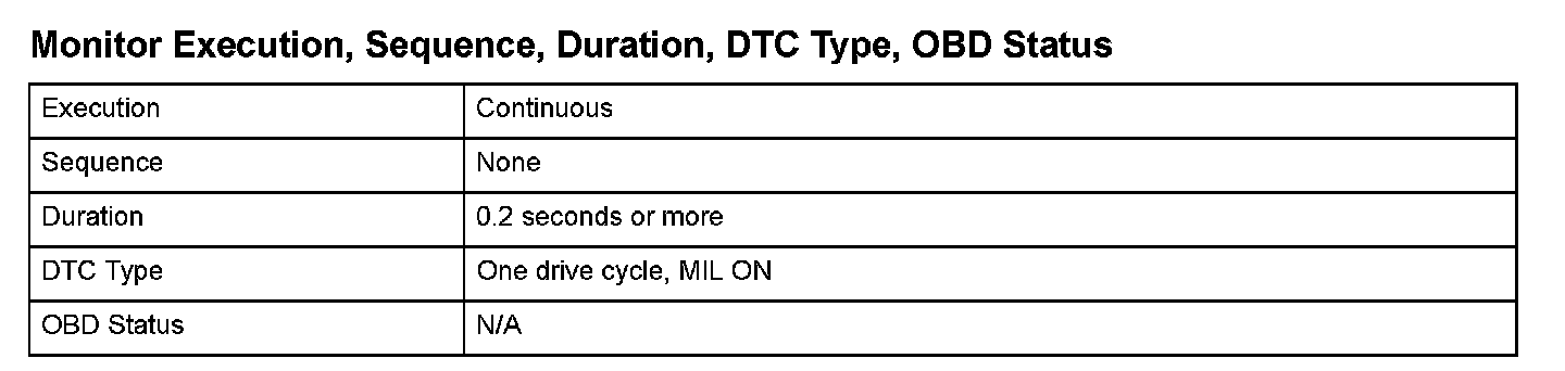 Monitor Execution, Sequence, Duration, DTC Type, OBD Status