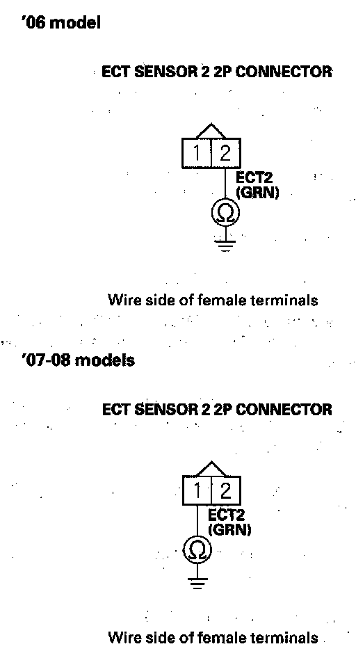 YES - Check for poor connections or loose terminals at ECT sensor 2 and the ECM/PCM. If the ECM/PCM was updated, substitute a known-good ECM/PCM, then recheck. If the ECM/PCM was substituted, go to step 1.