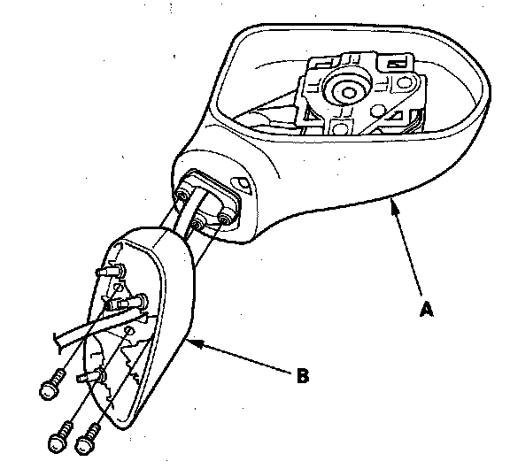 8. Remove the three screws, and separate the mirror housing (A) from the bracket (B).
