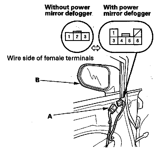 2. Disconnect the 3P (or 6P)* connector (A) from the power mirror actuator (B).