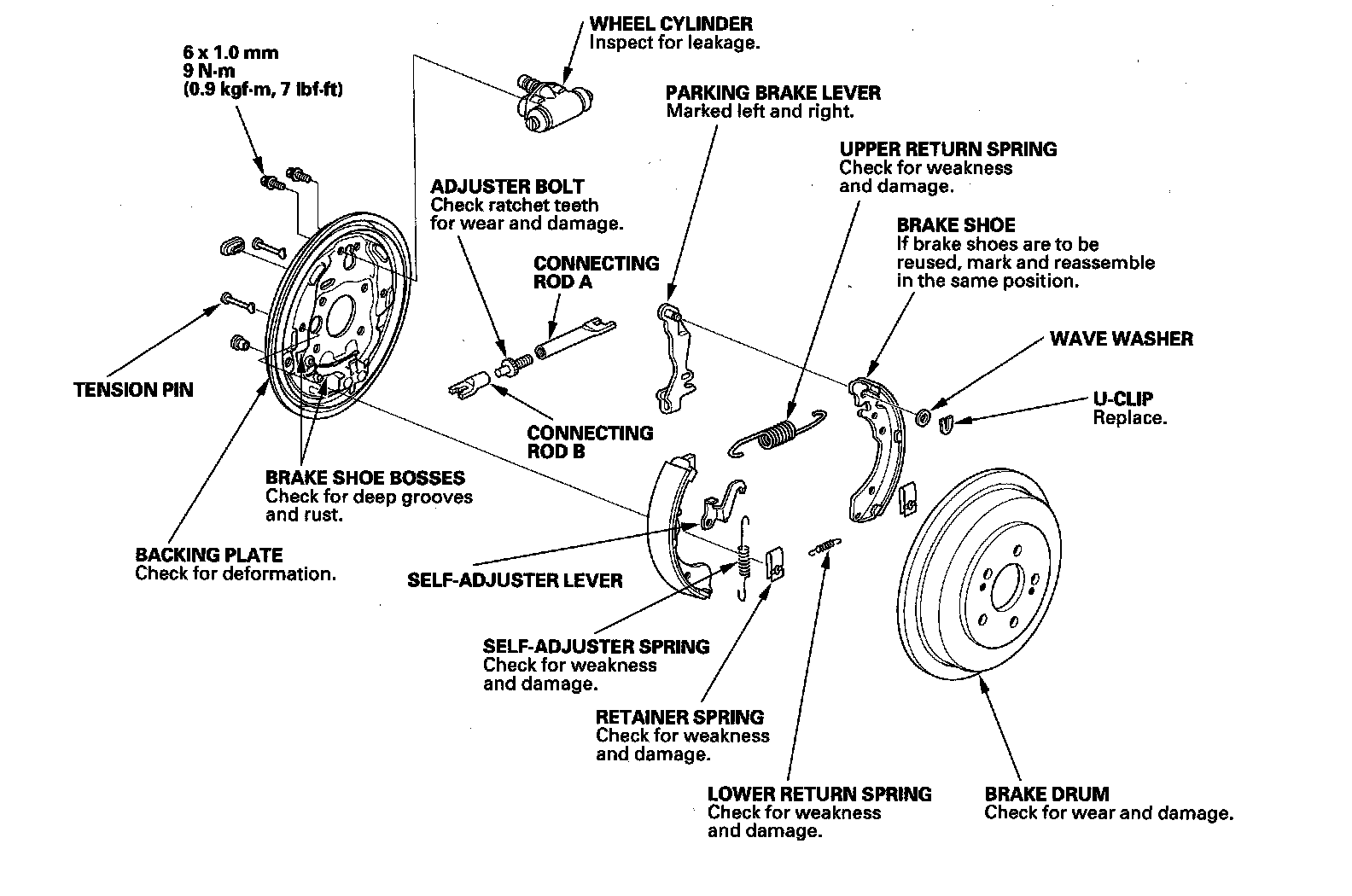 Rear Drum Brake InspectionCAUTION: Frequent inhalation of brake pad dust, regardless of material composition, could be hazardous to your health. Avoid breathing dust particles. Never use an air hose or brush to clean brake assemblies. Use an OSHA-approved vacuum cleaner.